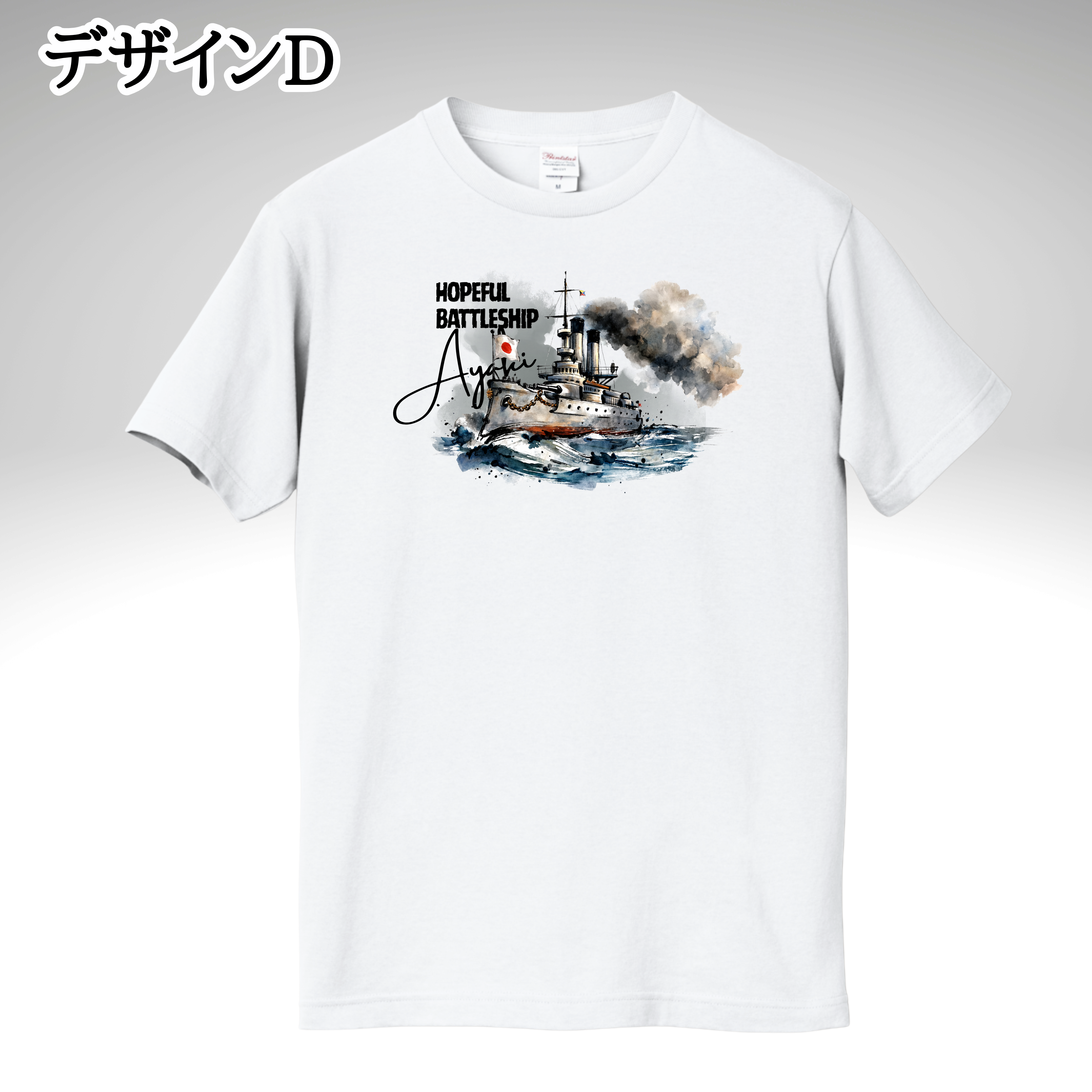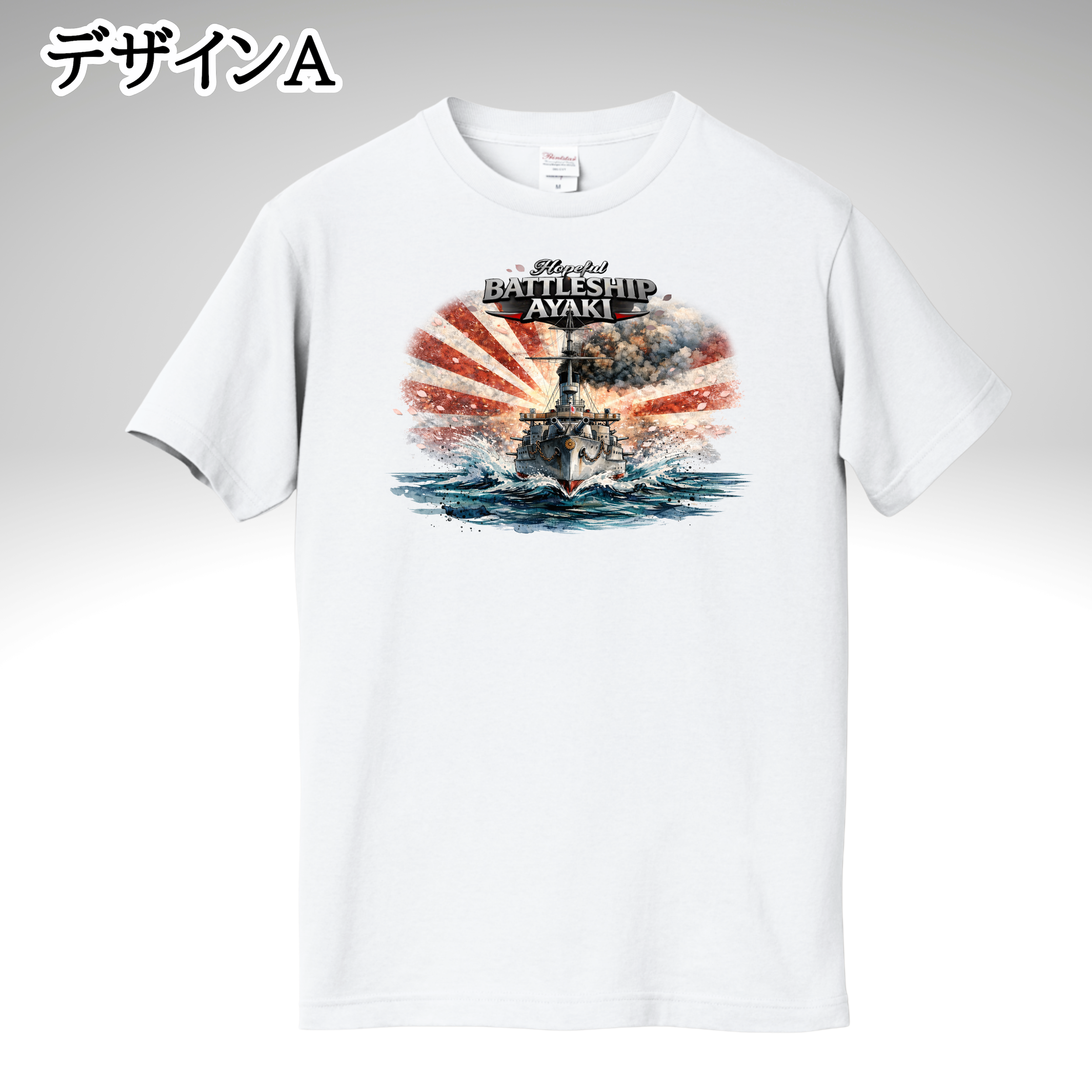 架空の戦艦「希望戦艦AYAKI」を描いたTシャツです。